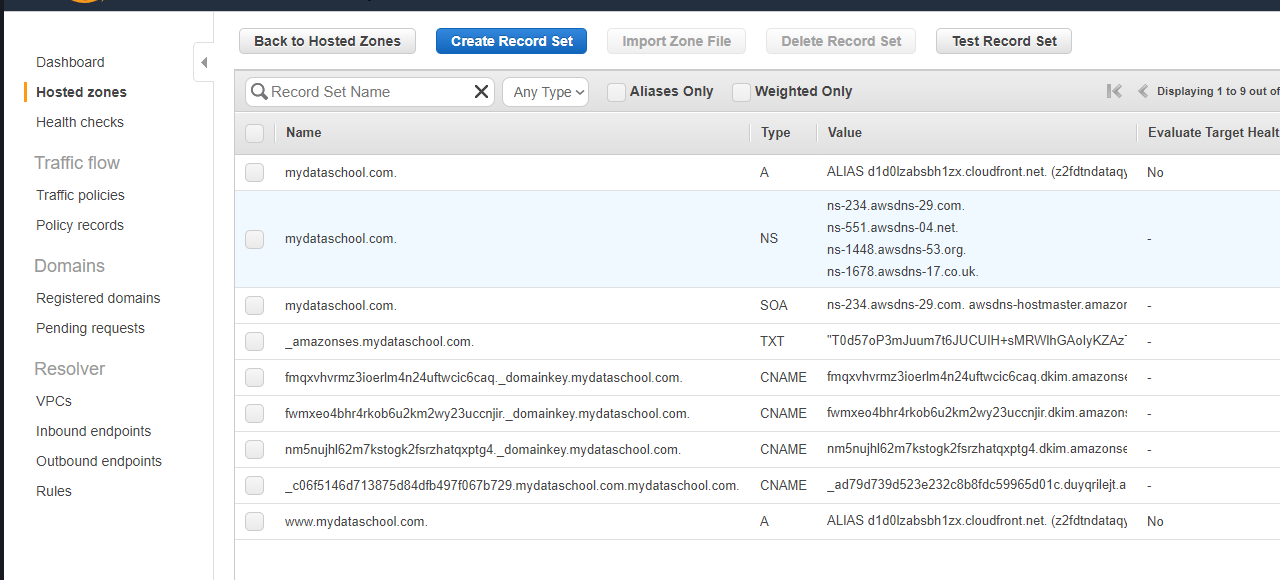 Go to Route53 --> Hosted zones and you will see something like this below. It will ne less but similar